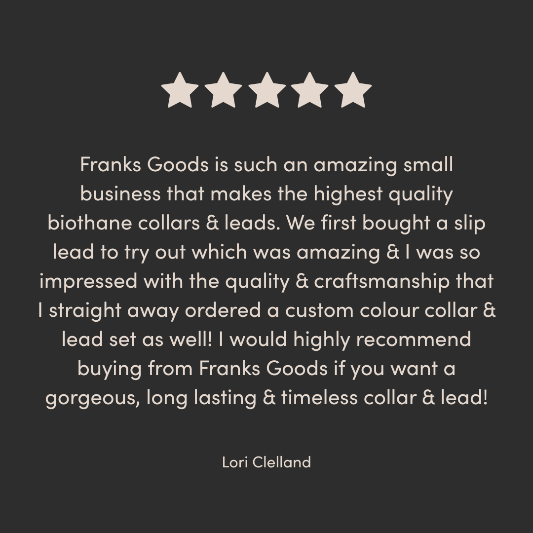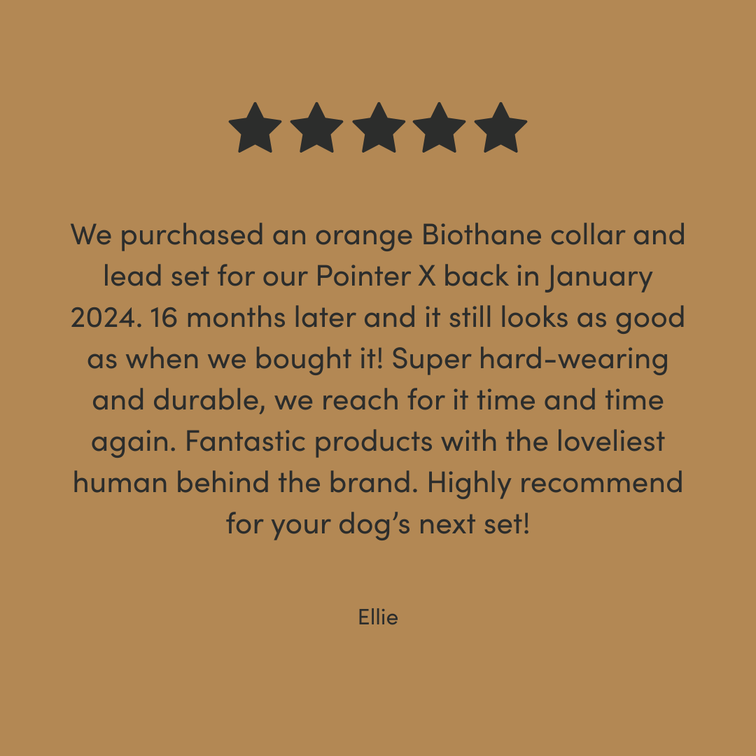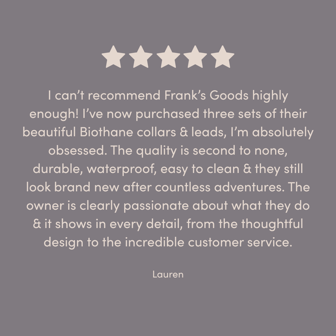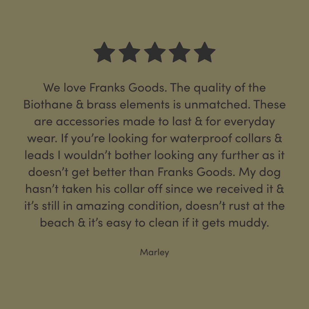 Our BioThane® collars are available in sizes XS - XL and our BioThane® leads are available in S/M and M/L to suit all dog breeds. All of our accessories are handmade to order in our workshop by the sea in Brighton, UK.