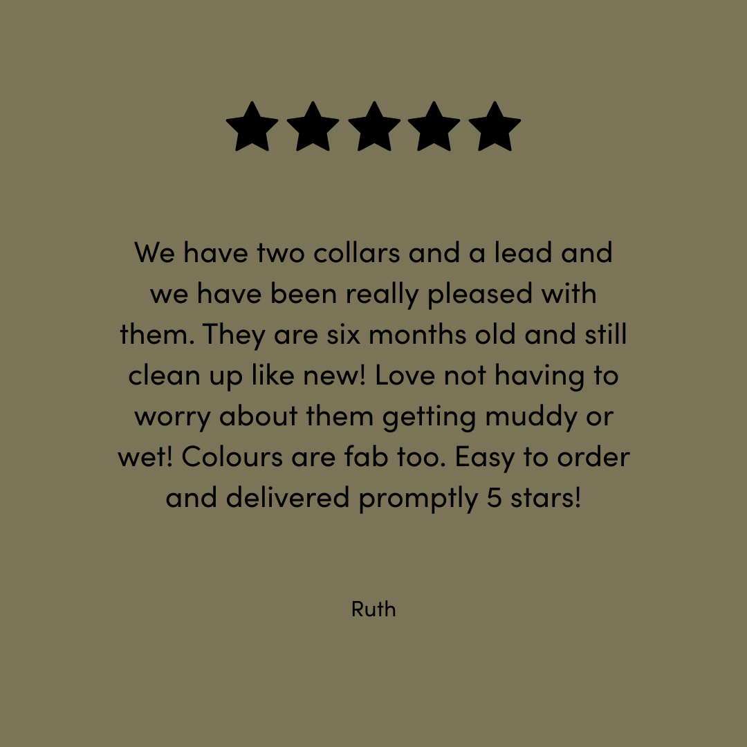 An extra highlight of contrast colour to your collar or lead. A contrast band across the back of the collar visible from the top when worn. A contrast band on the lead which doubles up as a traffic handle.