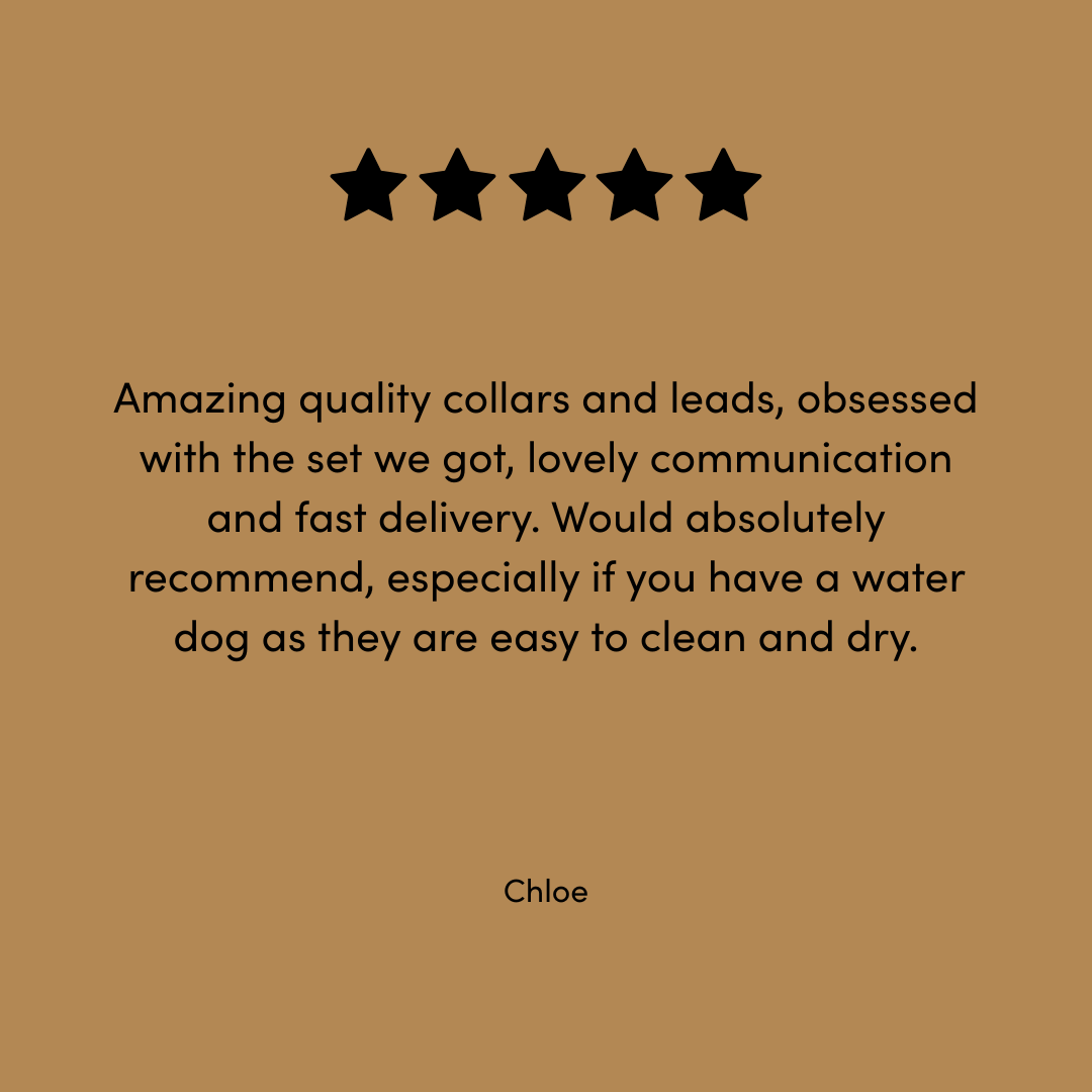 This gorgeous collaboration with our friends over at Bark & Vibe has resulted in a beautifully classic tan & khaki collar & lead set. The set matches perfectly to their must have best selling Doggo Weekender Bag.