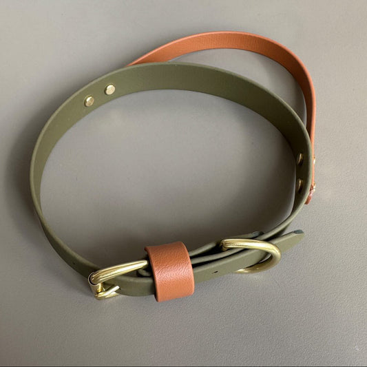 Beautiful colour block designs created for our customers. If you would like a combination you cannot see here please order a collar & lead in the main colour & let us know the highlight colour you would like. If you come up with a combination we haven't done yet we can also name it after your dog!