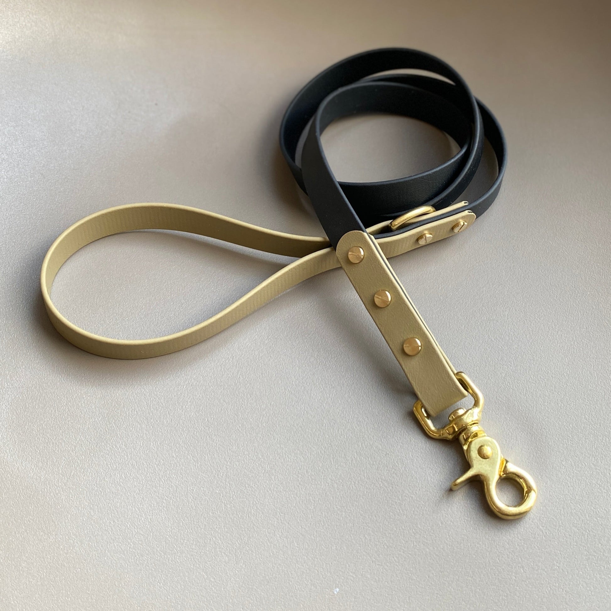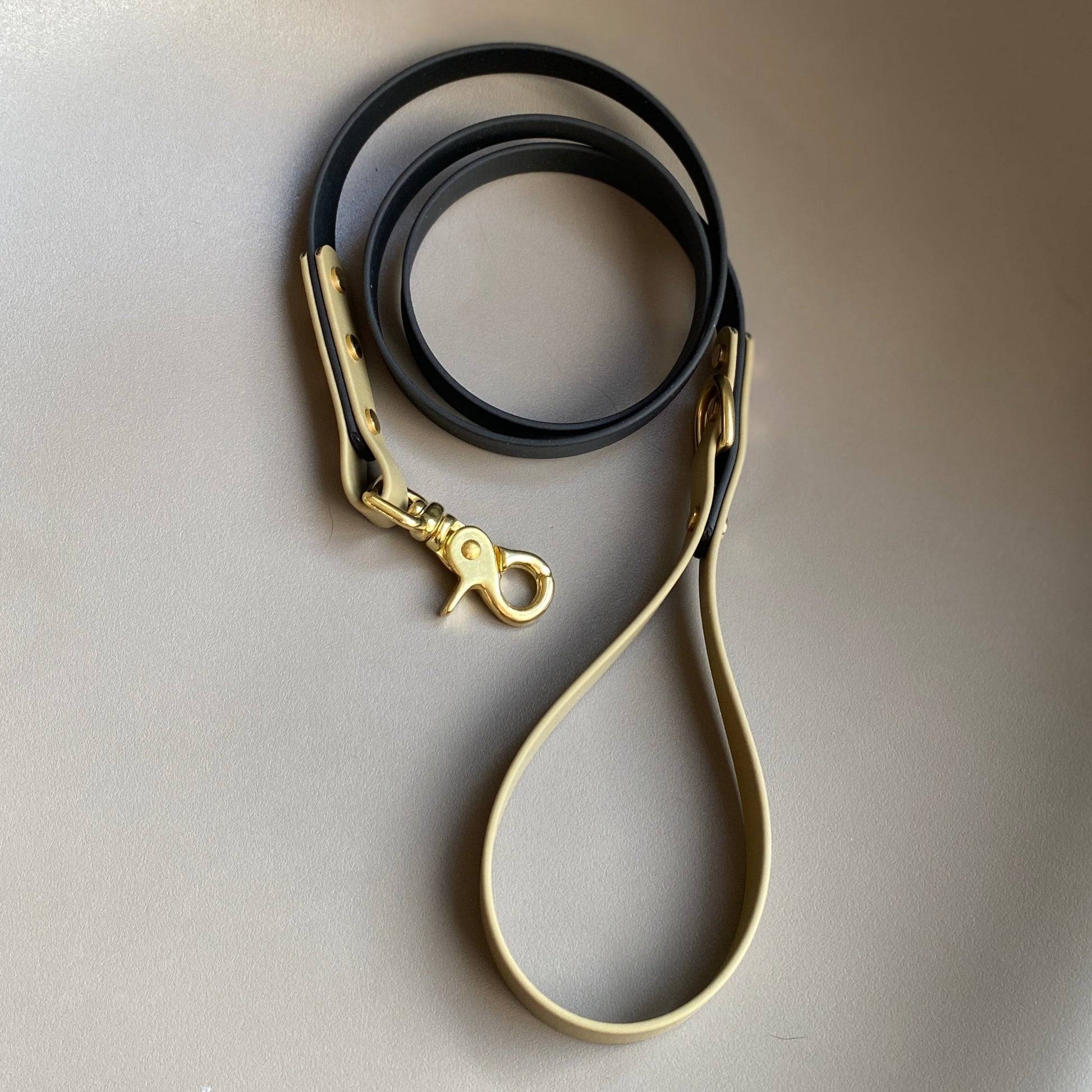 Our handmade collars and leads are made of BioThane®, a very strong rubber coated webbing that has a soft pliable leather like look and feel. BioThane® is water resistant, mould resistant, odour resistant, anti-bacterial and easy to keep clean. The ideal material for any active pup, especially if your dog likes a swim or gets very dirty during their walks, simply wipe it clean afterwards and it will be as good as new.
