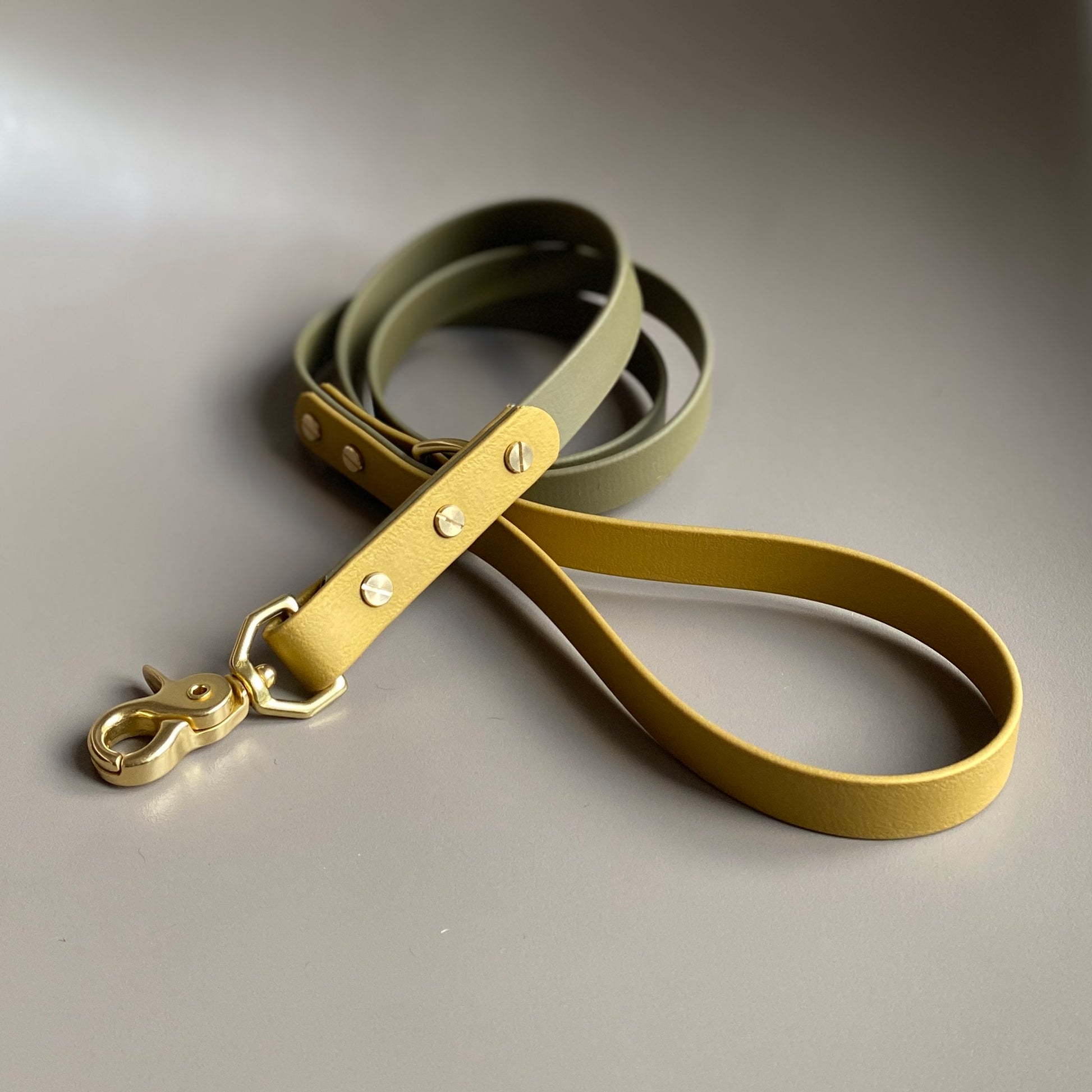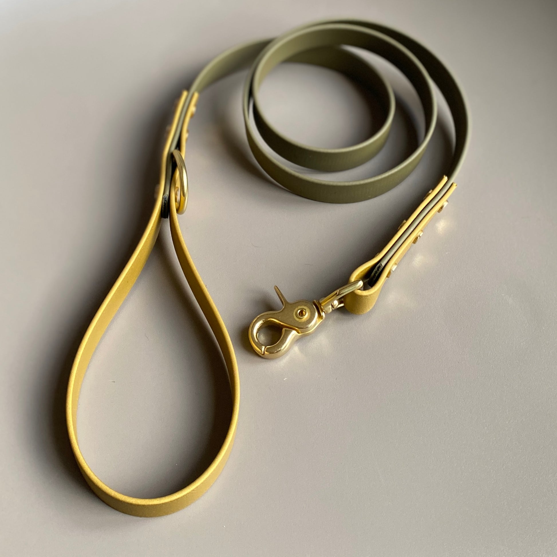 Our handmade collars and leads are made of BioThane®, a very strong rubber coated webbing that has a soft pliable leather like look and feel. BioThane® is water resistant, mould resistant, odour resistant, anti-bacterial and easy to keep clean. The ideal material for any active pup, especially if your dog likes a swim or gets very dirty during their walks, simply wipe it clean afterwards and it will be as good as new.