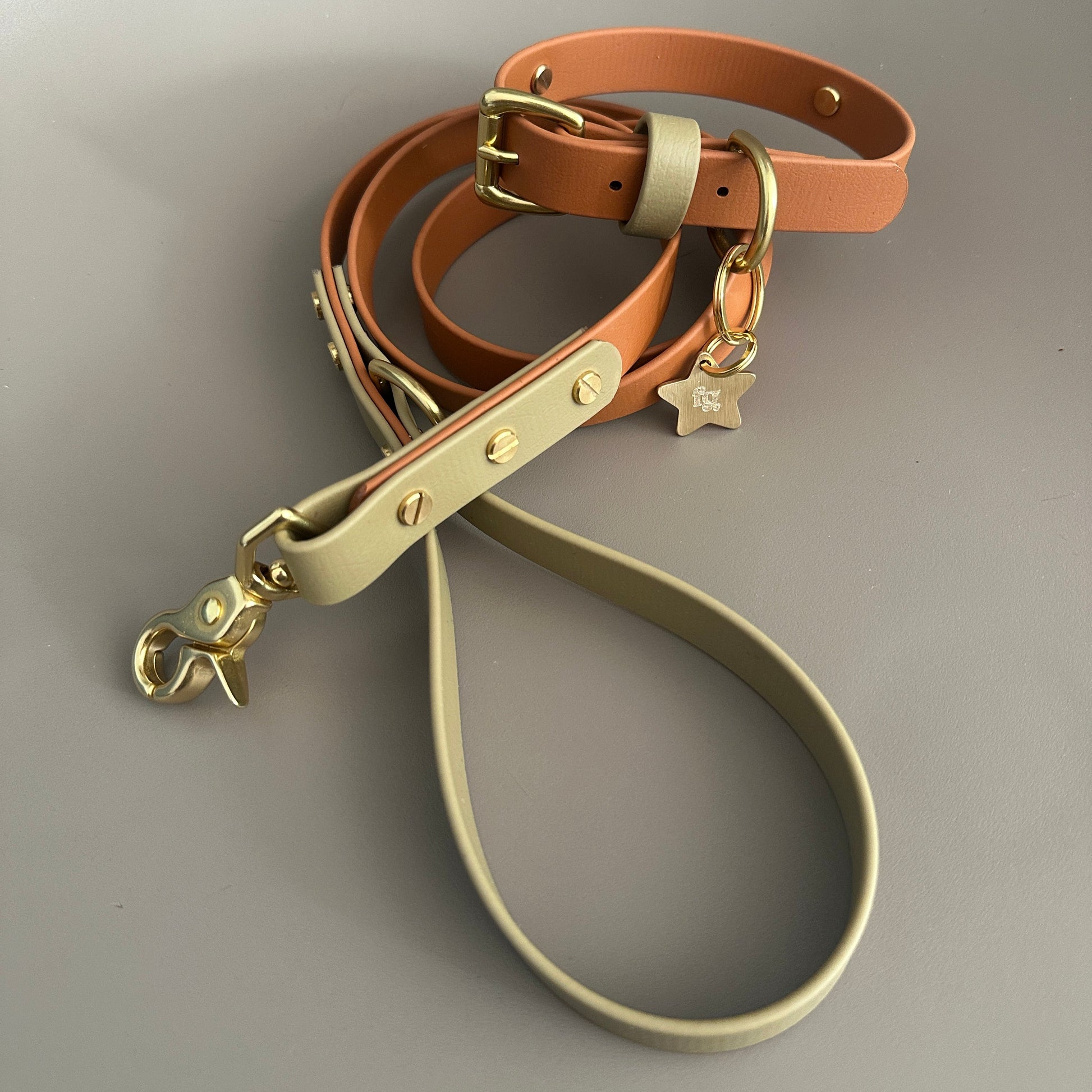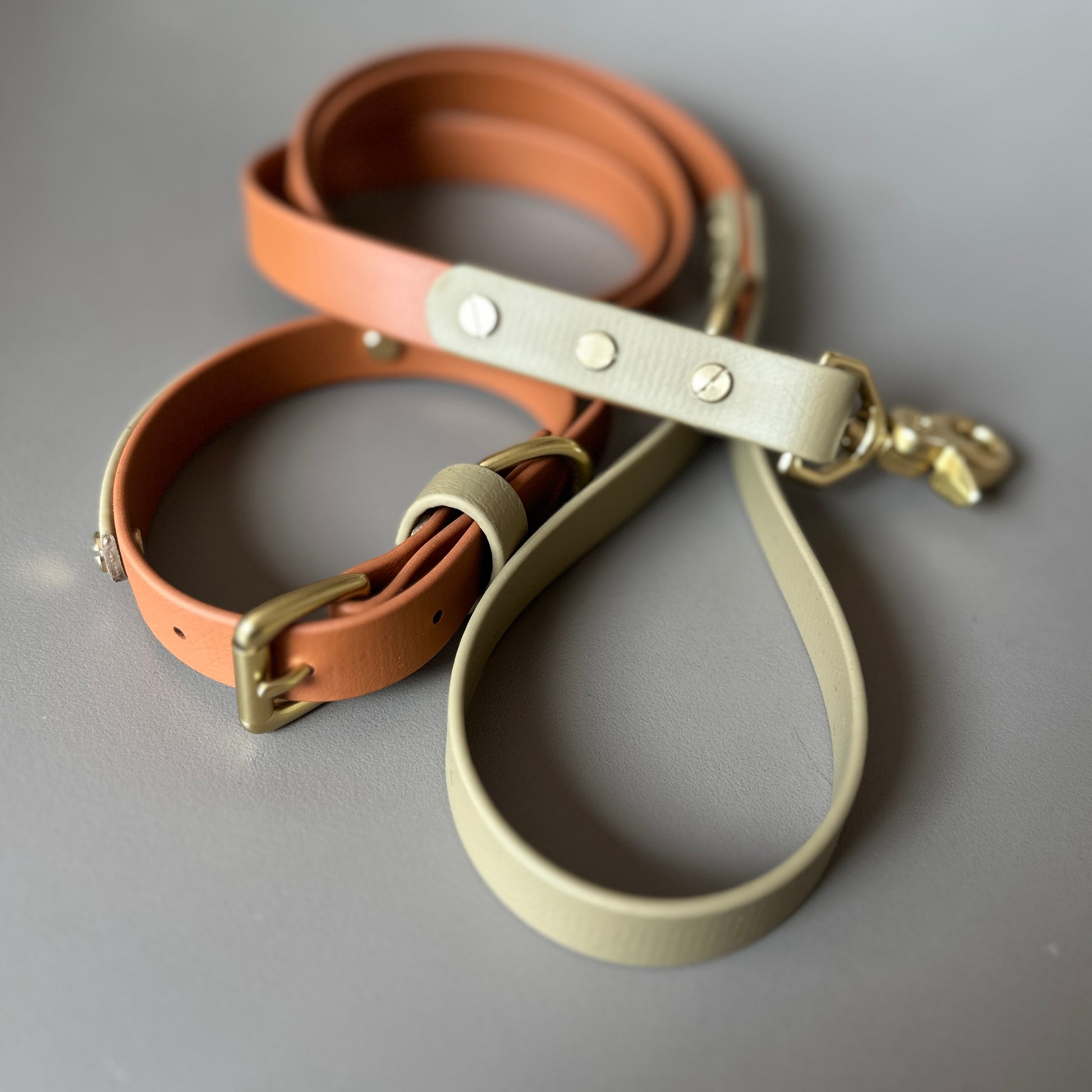 Our brand new Tan as the main colour with highlights of our classic Khaki. This colour combination was chosen by our lovely friends over at Bark & Vibe to match their famous must have dog travel bag.