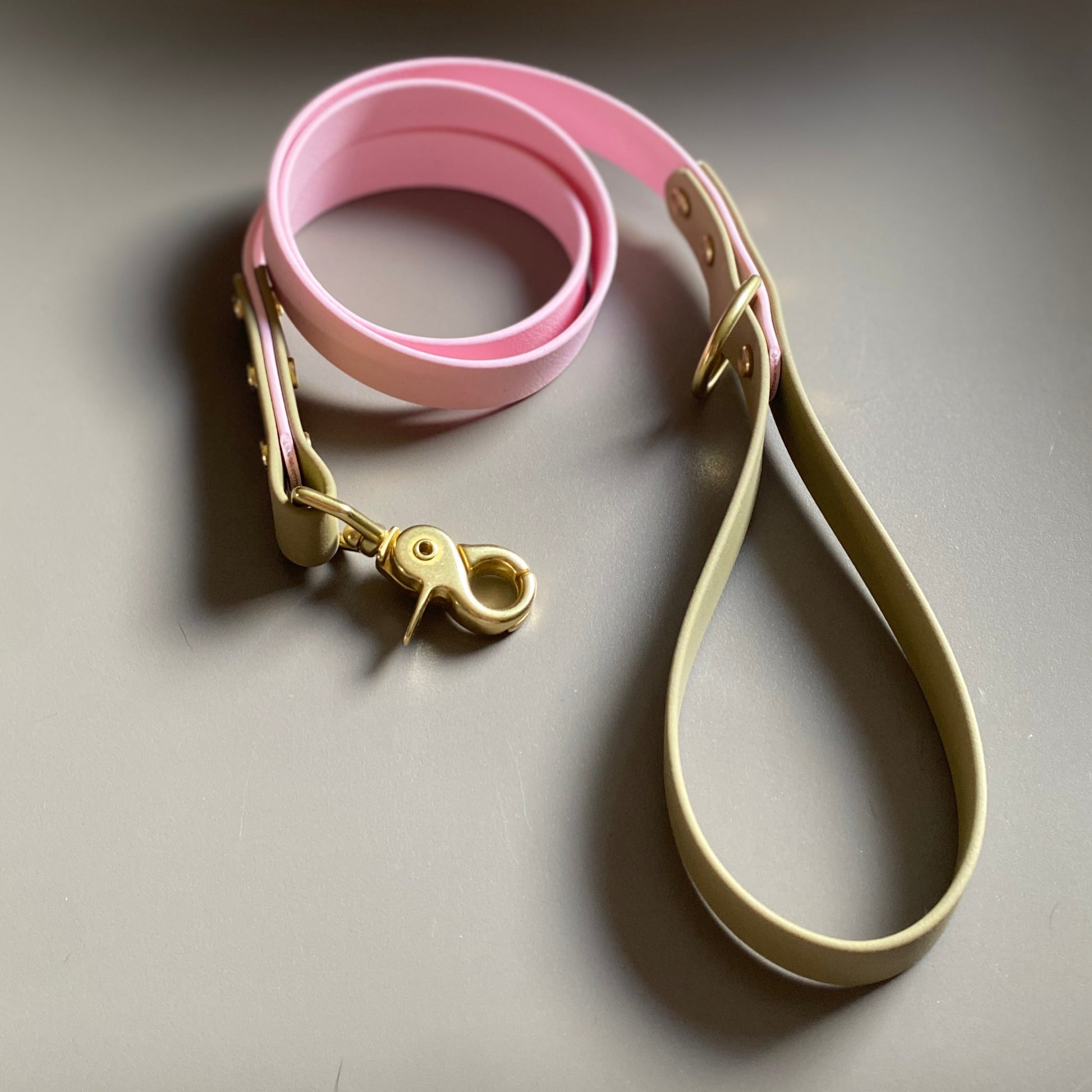 Our handmade collars and leads are made of BioThane®, a very strong rubber coated webbing that has a soft pliable leather like look and feel. BioThane® is water resistant, mould resistant, odour resistant, anti-bacterial and easy to keep clean. The ideal material for any active pup, especially if your dog likes a swim or gets very dirty during their walks, simply wipe it clean afterwards and it will be as good as new.