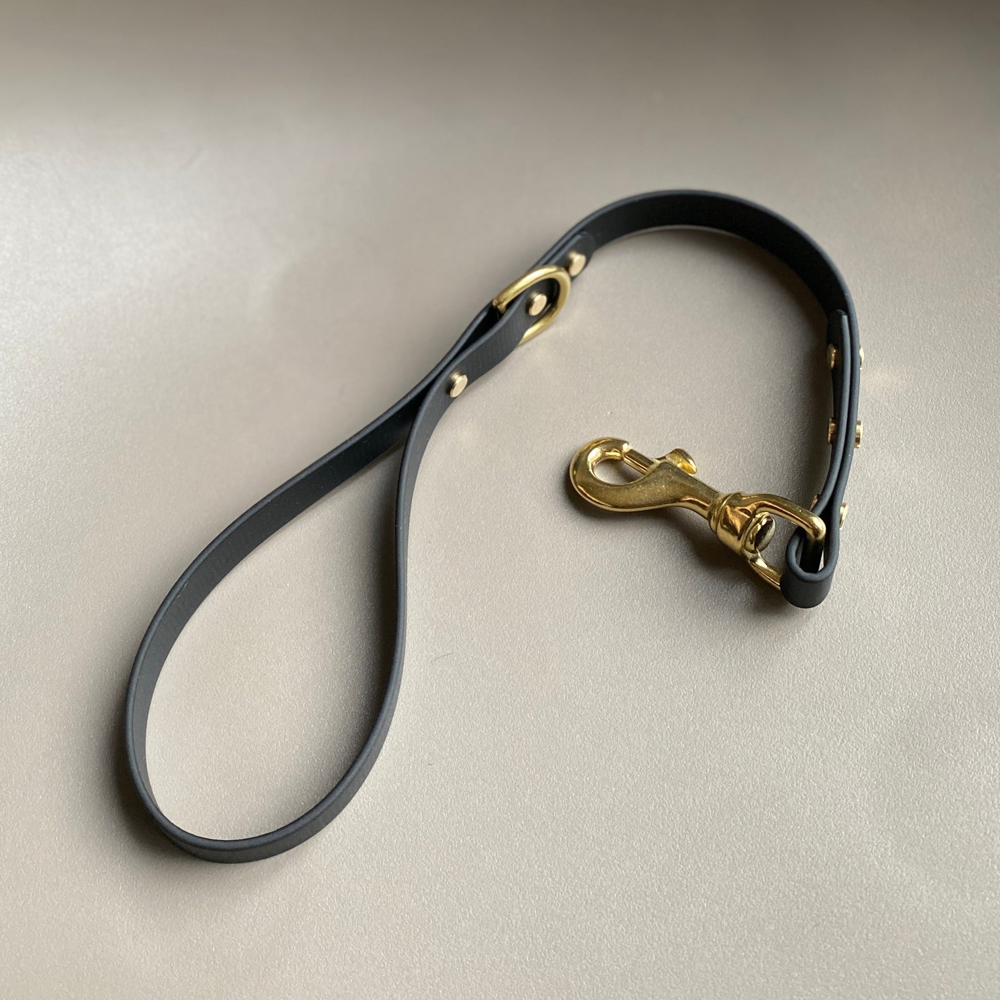 These short leads are 19mm wide and 50cm long with a solid brass trigger clip, solid brass d-ring and solid brass screws.