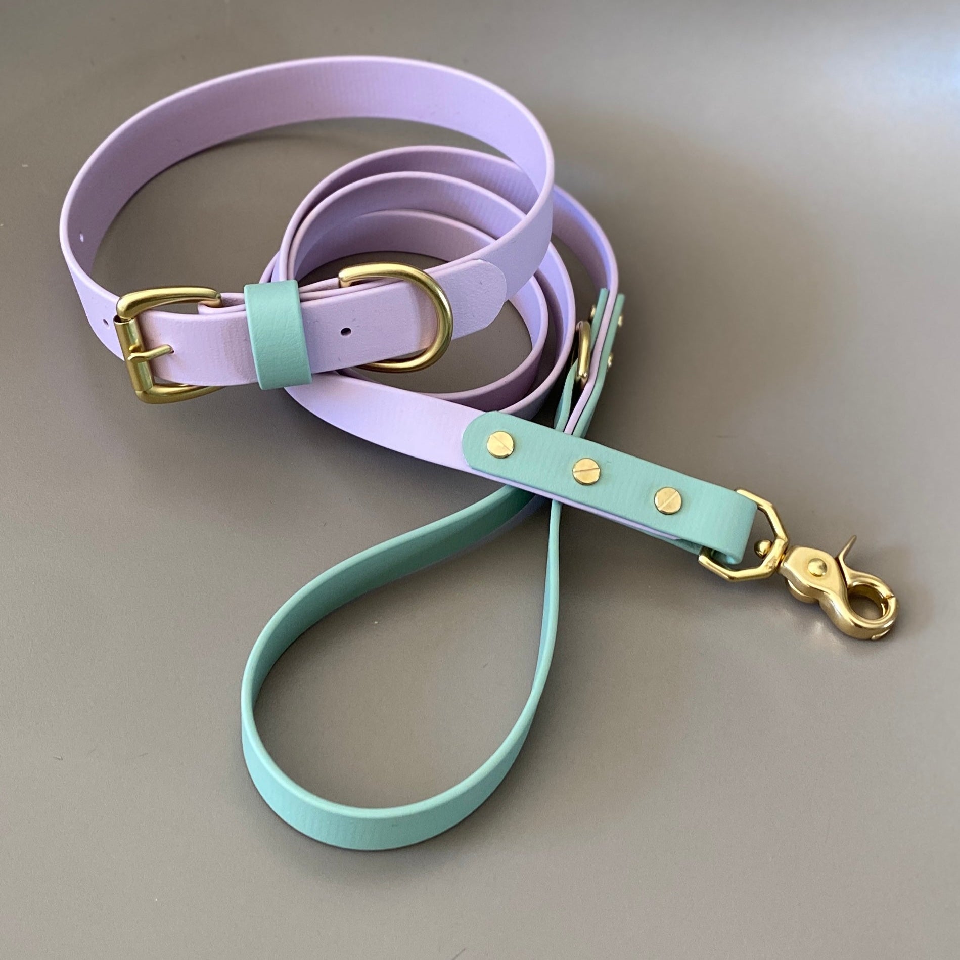 Our Lavender as the main colour with a highlight of Sage on the keeper. Designed & worn by beautiful customer Chilli the Doberman.