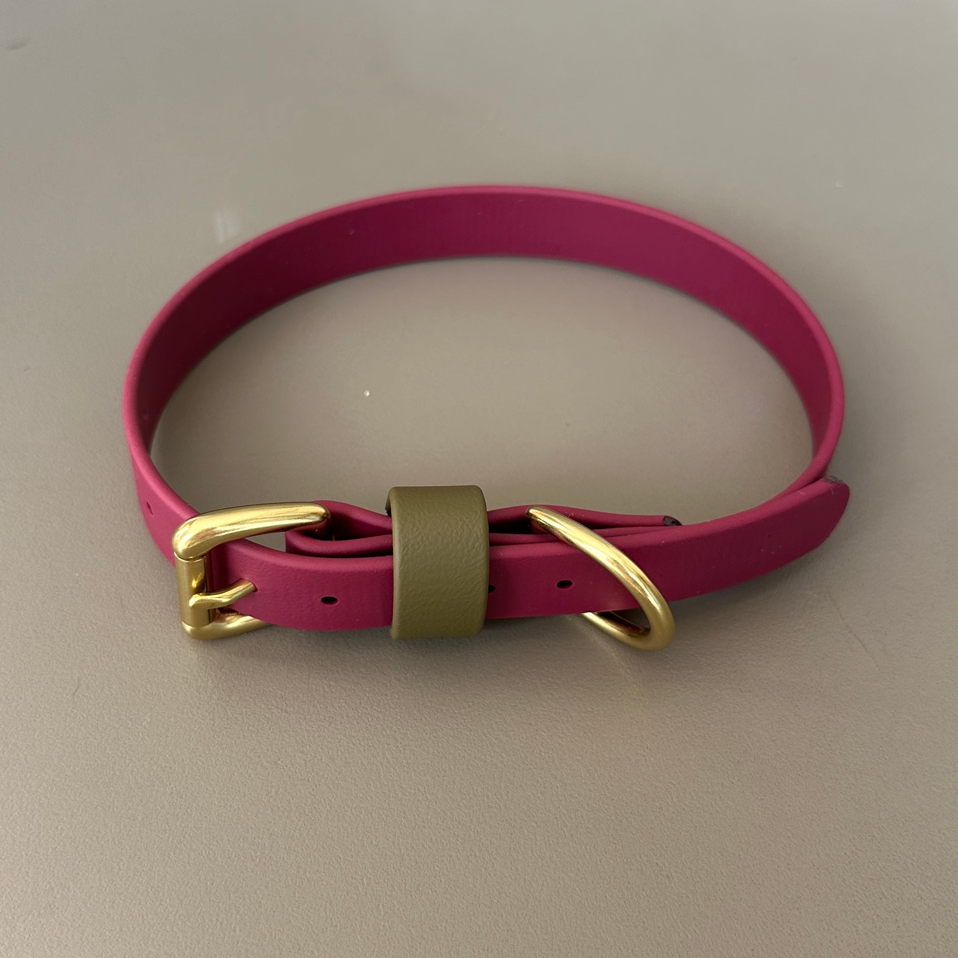 Our Wine as the main colour with a highlight of Olive on the keeper. Designed & worn by pretty customer Dottie the Golden Retriever.