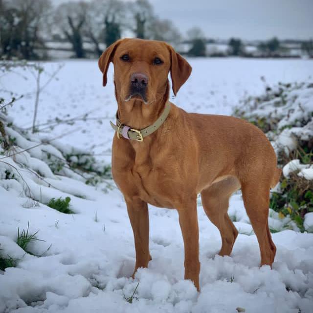 Our Khaki as the main colour with a pretty highlight of Lavender on the keeper. Designed & worn by gorgeous customer Lola the Fox Red Labrador.