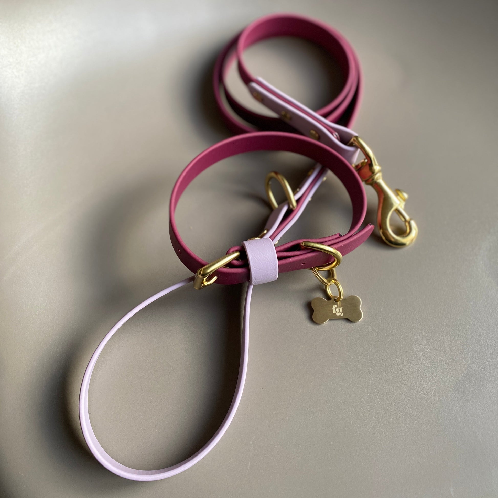 Our Wine as the main colour with a highlight of Lavender on the keeper. Designed & worn by gorgeous customer Margot the Cocker Spaniel.