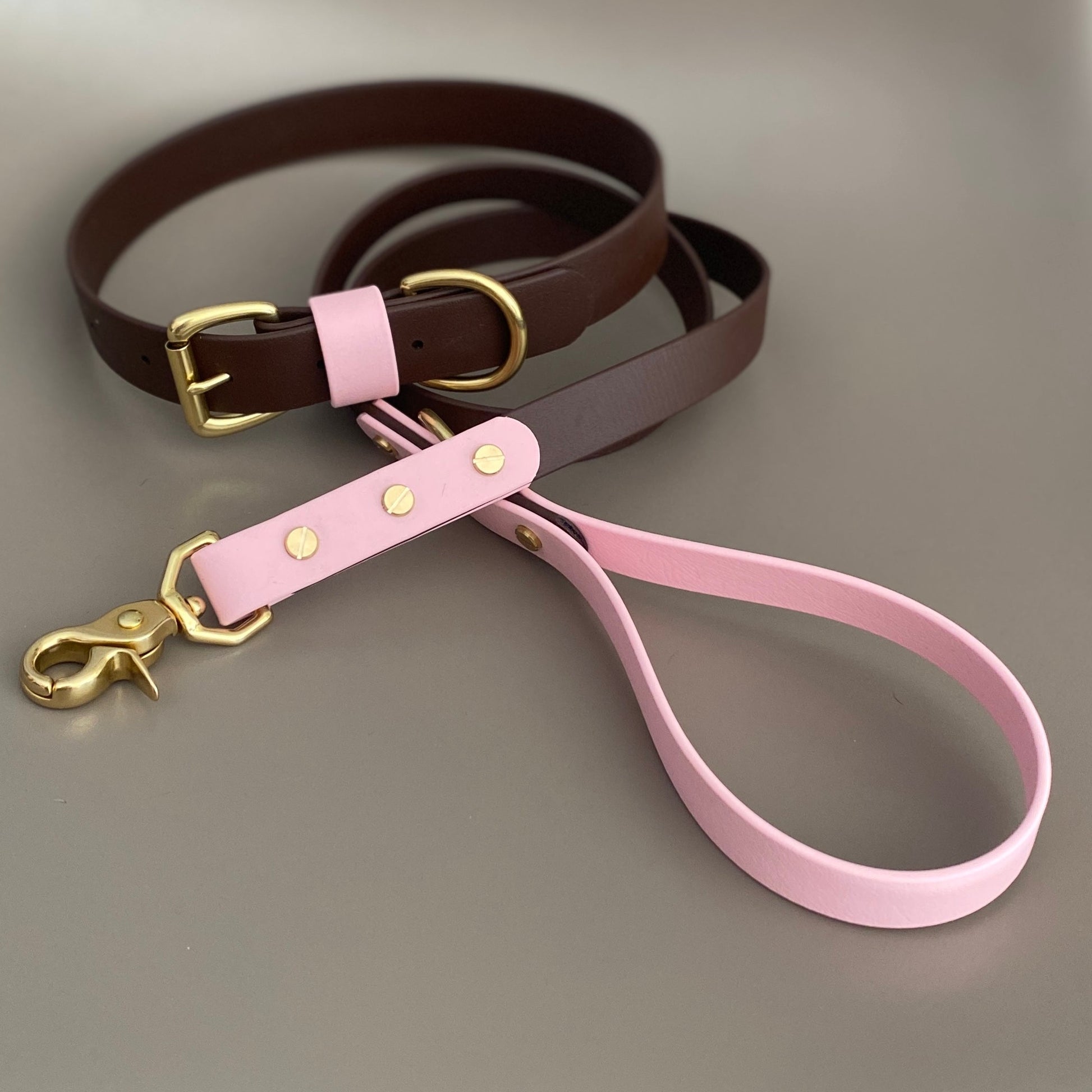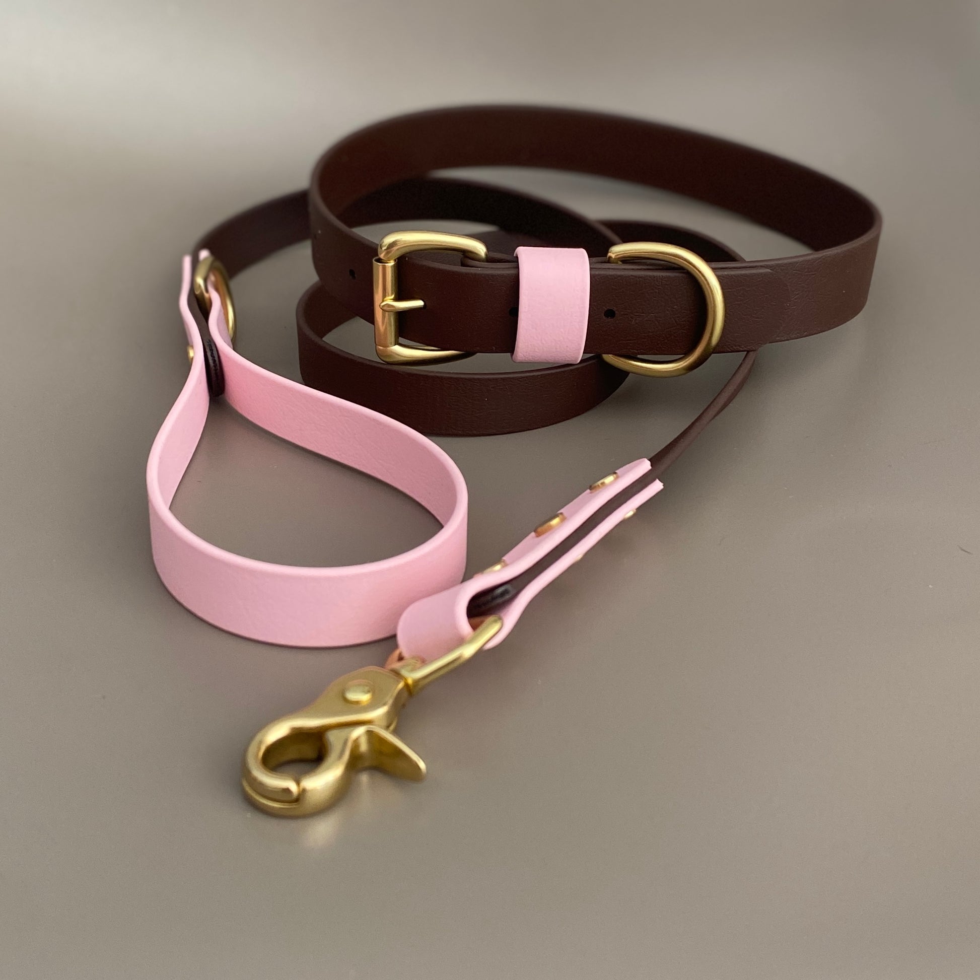 Our Dark Brown as the main colour with a highlight of Pastel Pink. Designed & worn by beautiful customer Mellie the Doberman.