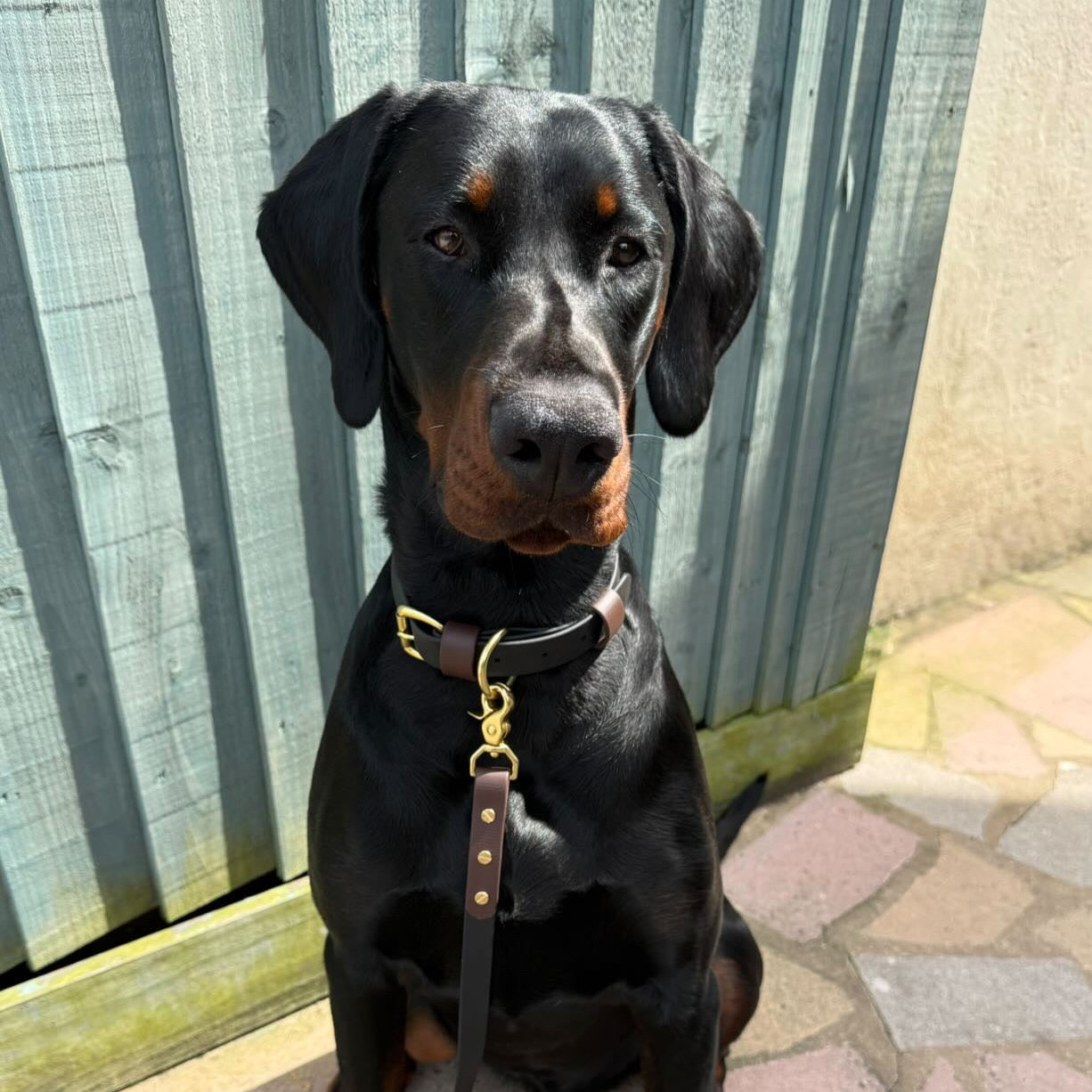 Our Black as the main colour with a highlight of Dark Brown. Designed & worn by gorgeous customer Nero the Dobermann.