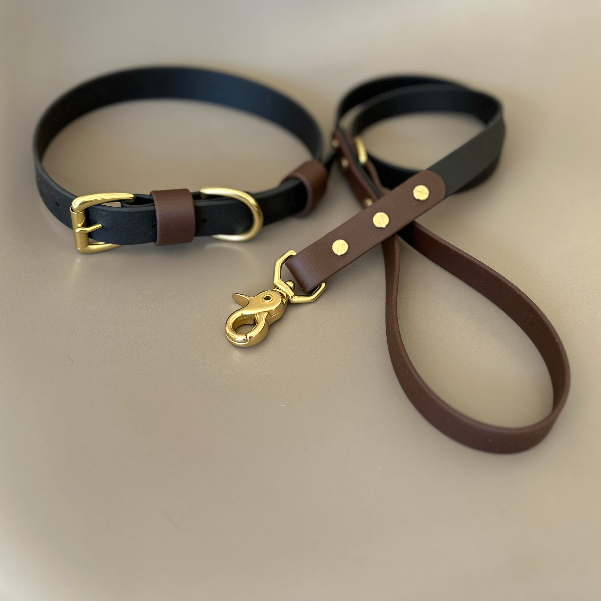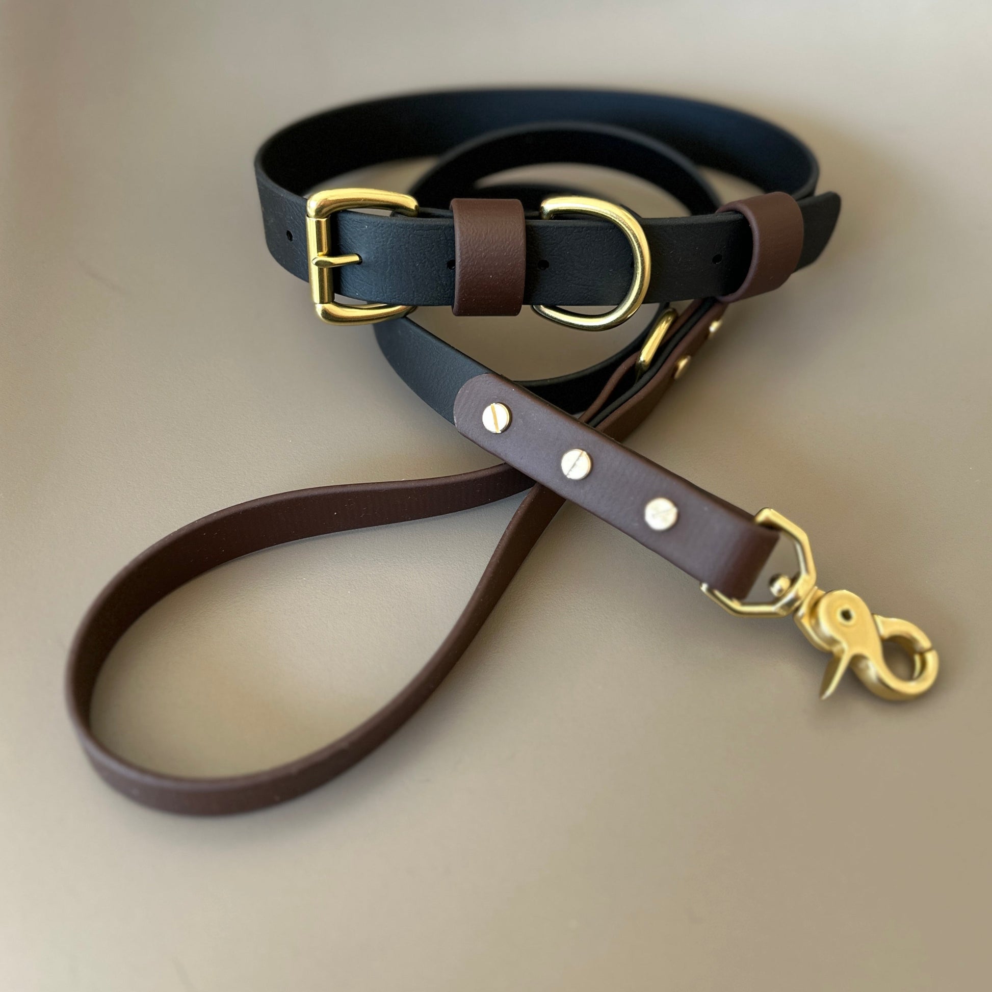Our handmade collars and leads are made of BioThane®, a very strong rubber coated webbing that has a soft pliable leather like look and feel. BioThane® is water resistant, mould resistant, odour resistant, anti-bacterial and easy to keep clean. The ideal material for any active pup, especially if your dog likes a swim or gets very dirty during their walks, simply wipe it clean afterwards and it will be as good as new.
