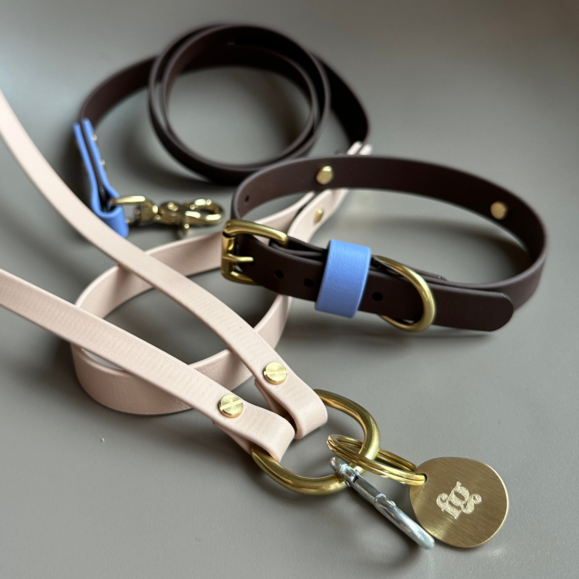 Our handmade collars and leads are made of BioThane®, a very strong rubber coated webbing that has a soft pliable leather like look and feel. BioThane® is water resistant, mould resistant, odour resistant, anti-bacterial and easy to keep clean. The ideal material for any active pup, especially if your dog likes a swim or gets very dirty during their walks, simply wipe it clean afterwards and it will be as good as new.