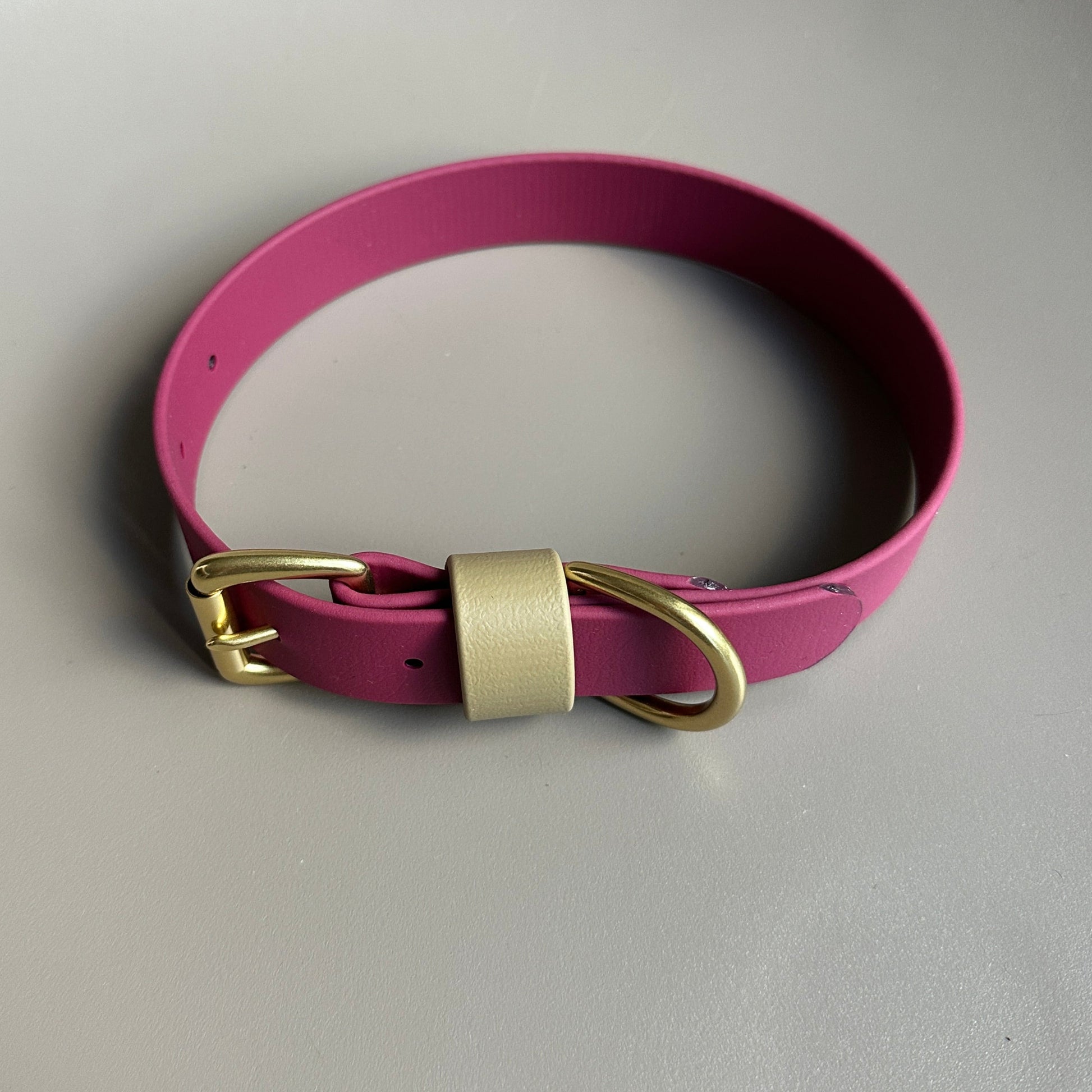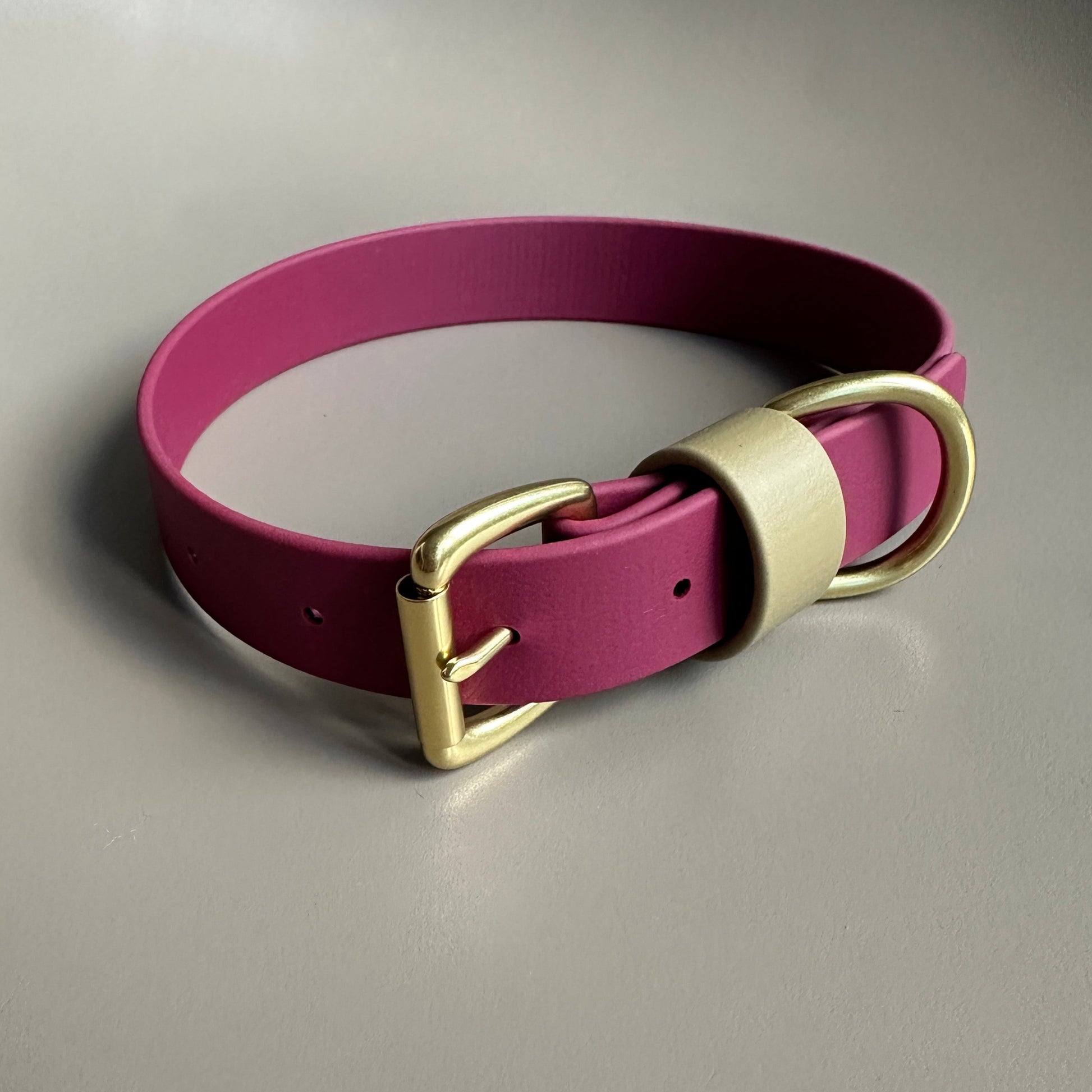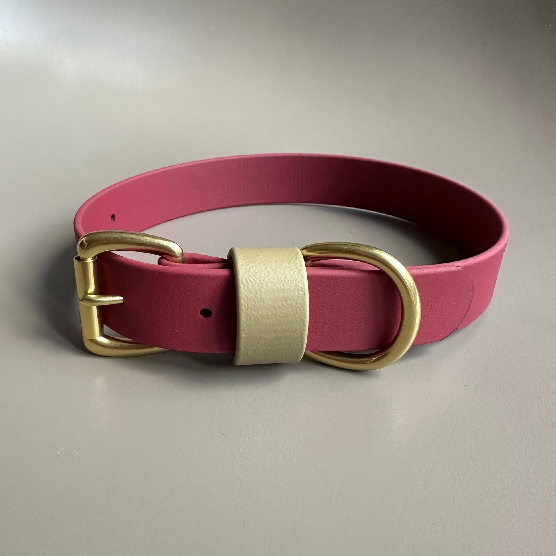 Our Wine as the main colour with a highlight of Khaki on the keeper. Designed & worn by pretty customer Renn the Boxer.