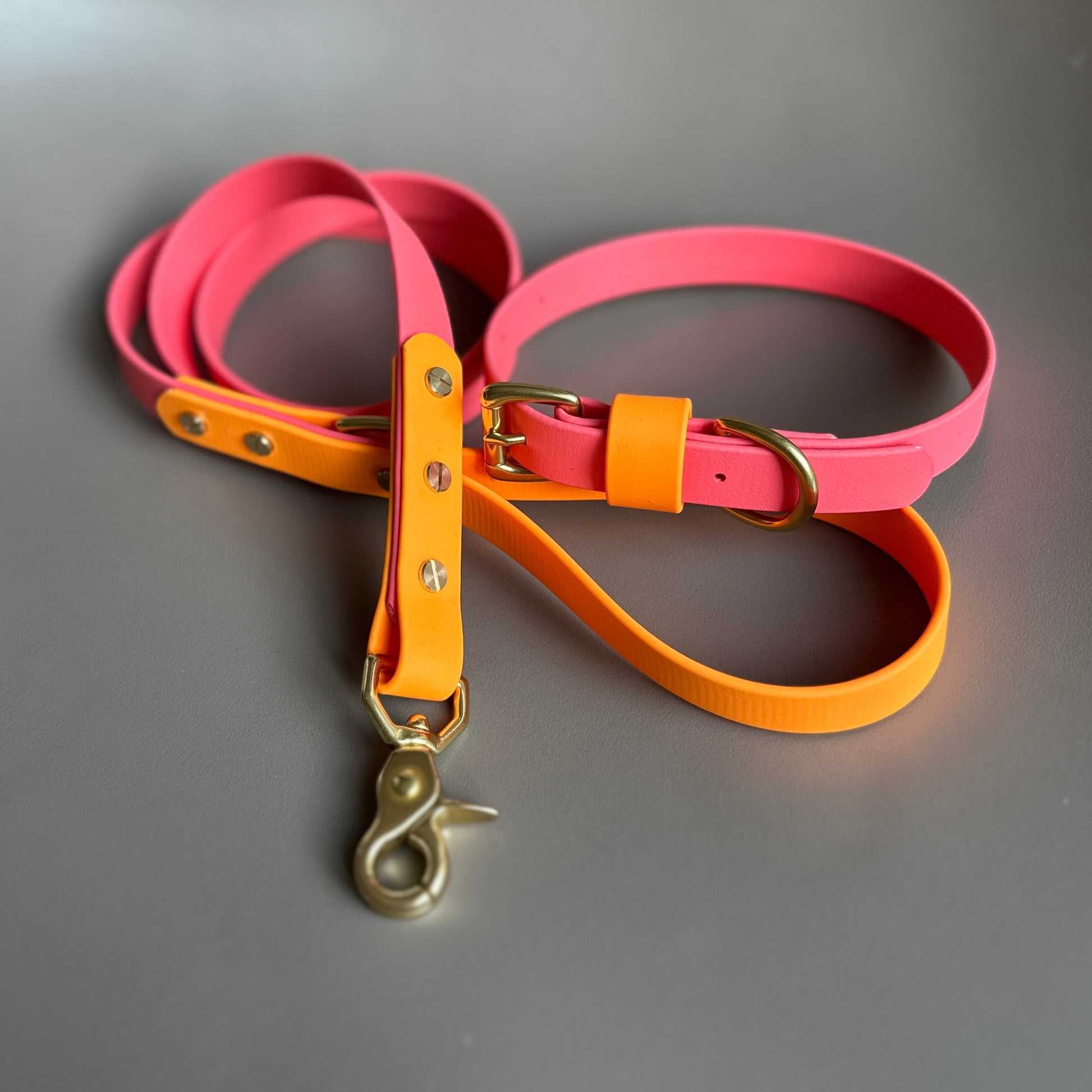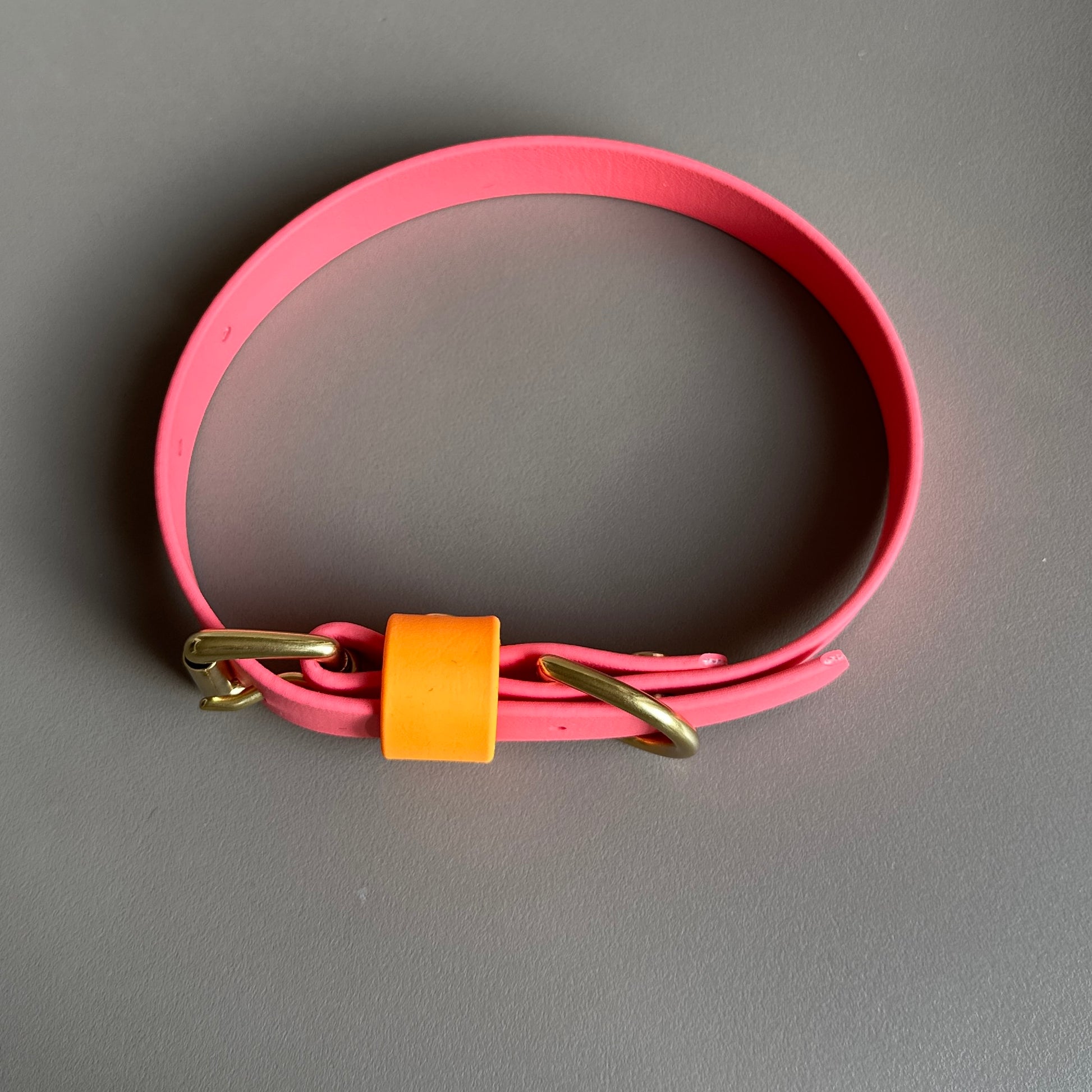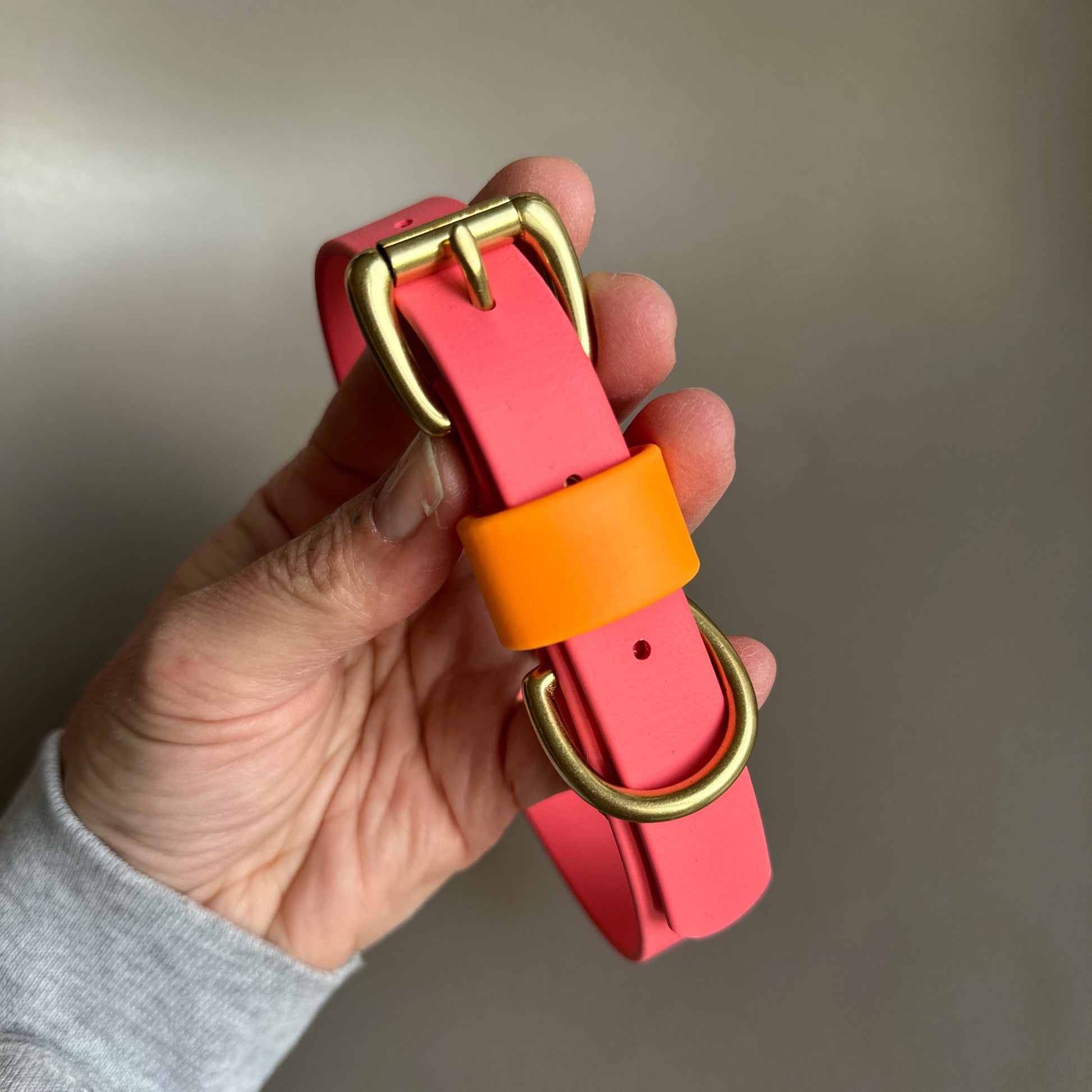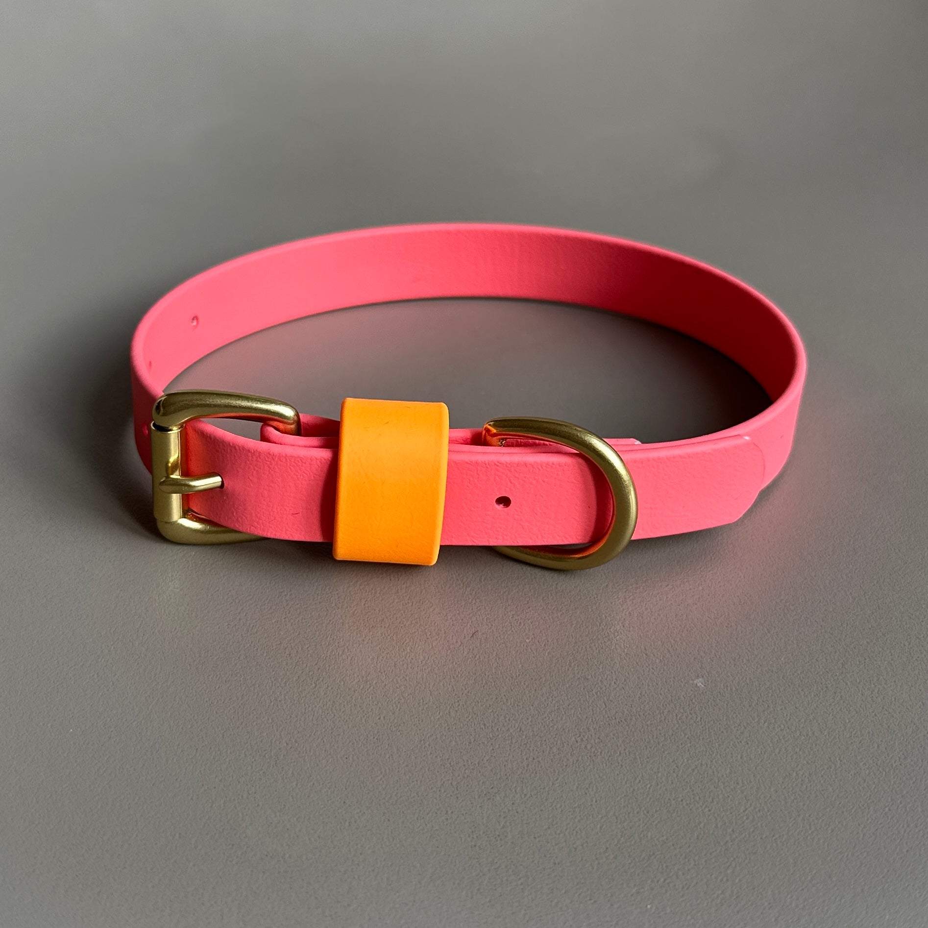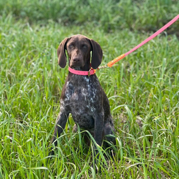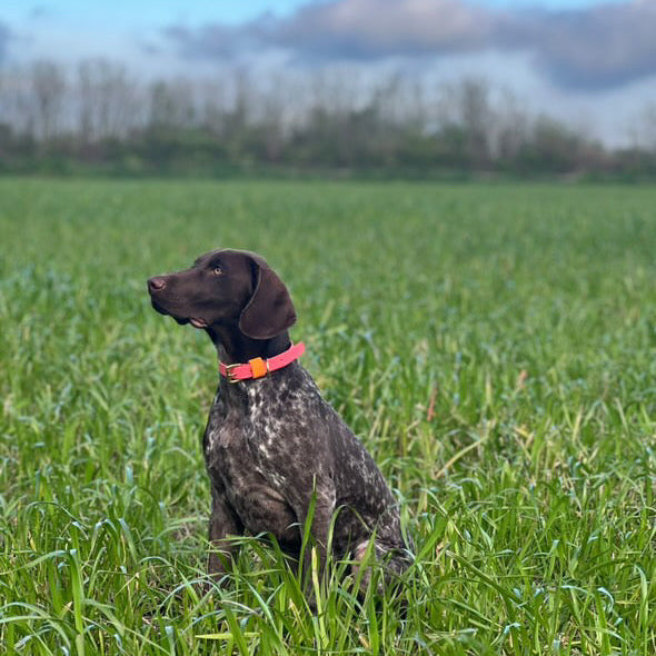 Our Coral as the main colour with a highlight of Orange on the keeper. Designed & worn by beautiful customer Roo the GSP.