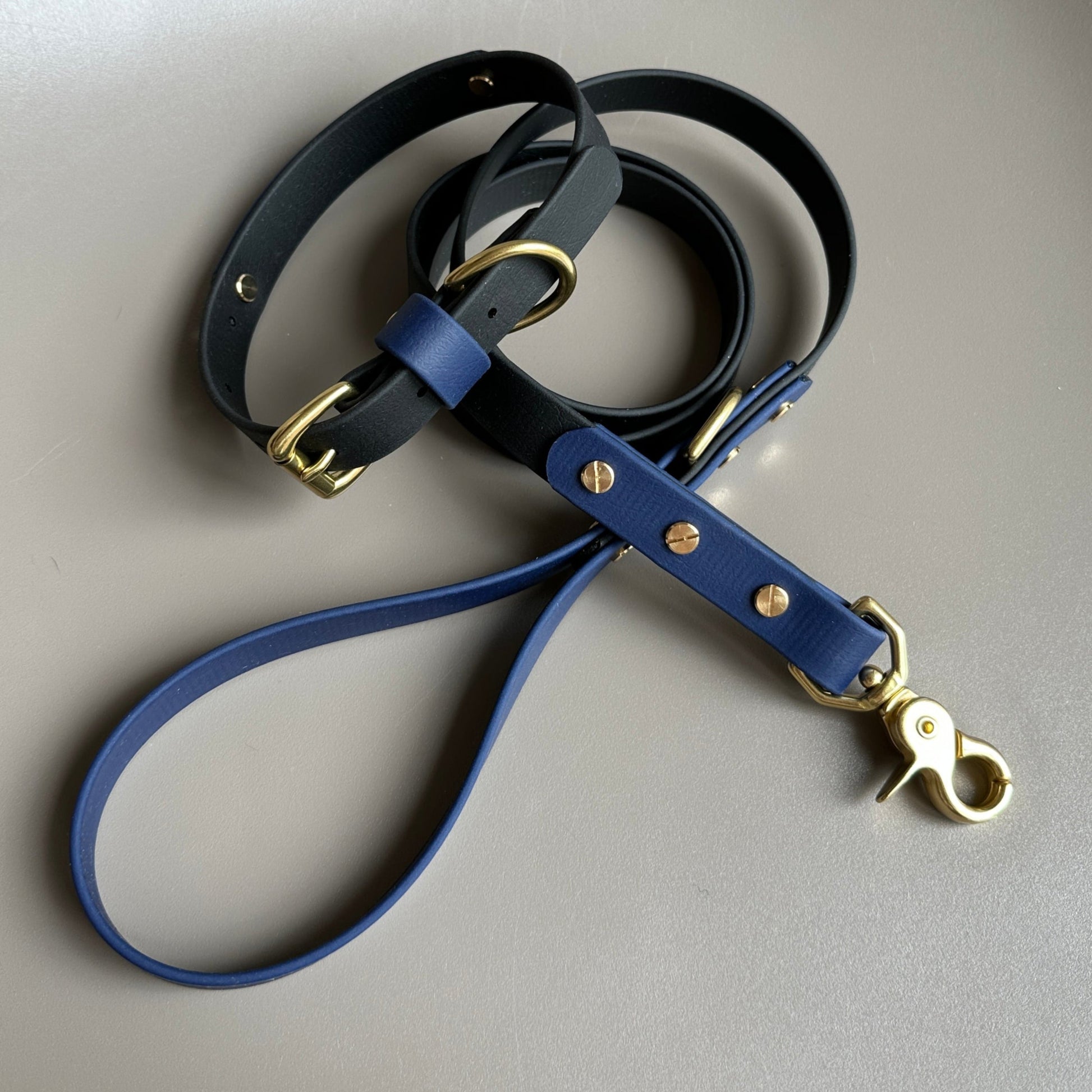 Our handmade collars and leads are made of BioThane®, a very strong rubber coated webbing that has a soft pliable leather like look and feel. BioThane® is water resistant, mould resistant, odour resistant, anti-bacterial and easy to keep clean. The ideal material for any active pup, especially if your dog likes a swim or gets very dirty during their walks, simply wipe it clean afterwards and it will be as good as new.
